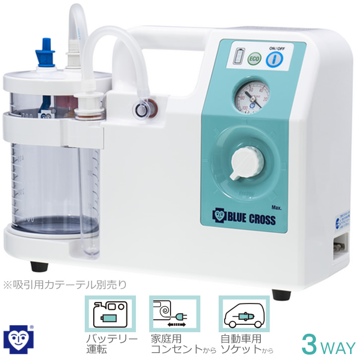 小型吸引器 吸引器3WAY 3電源吸引器 バッテリー内蔵 医療機器 ブルークロス・エマージェンシー 1310470 3WAY-750S-2 の後継商品 UL-133068