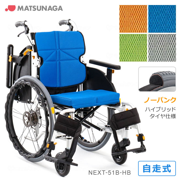 車椅子【在庫限り】車いす ネクストコア アジャスト ハイブリッドタイヤ ノーパンクタイヤ仕様 自走式 スリム スイングアウト 松永製作所 NEXT-51B HB UL-508873