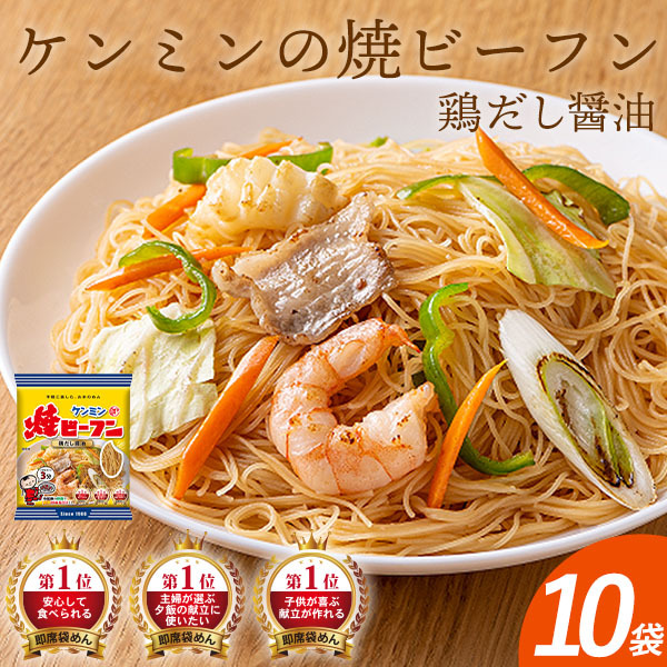 「都合により、一部商品内容・パッケージデザインが変更になる場合がありますので、あらかじめご了承ください。」ケンミン焼ビーフン 鶏だし醤油 (65g×10袋)
