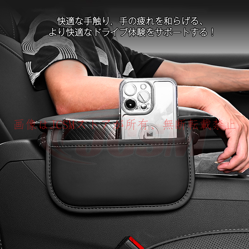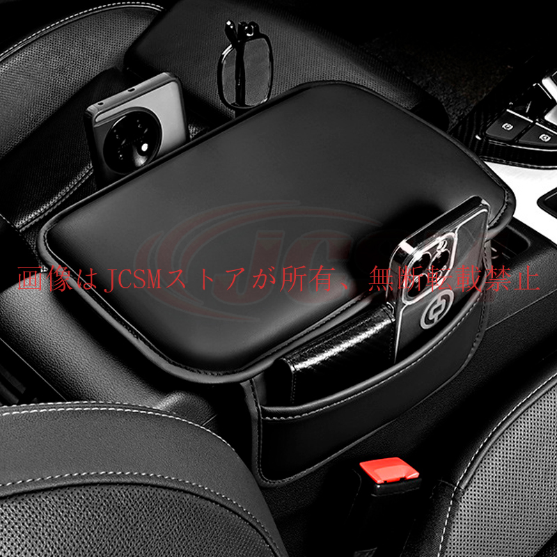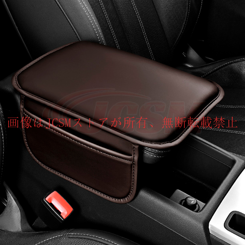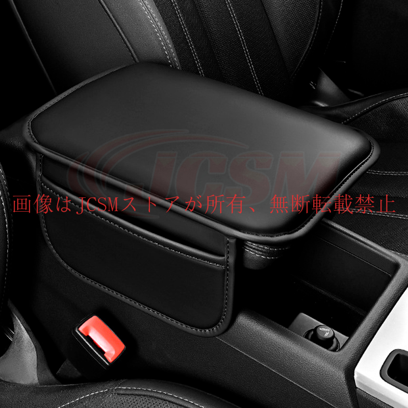 <br>アームレストカバー 肘掛けクッション ティッシュボックスとサイドポケット付き 車アームレストサポート 車 自動車 普通車 通気性抜群 滑り止め キズ予防 キズ隠し PUレザー 内装パーツ カーアクセサリー JCSM