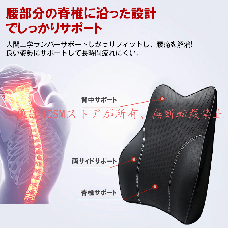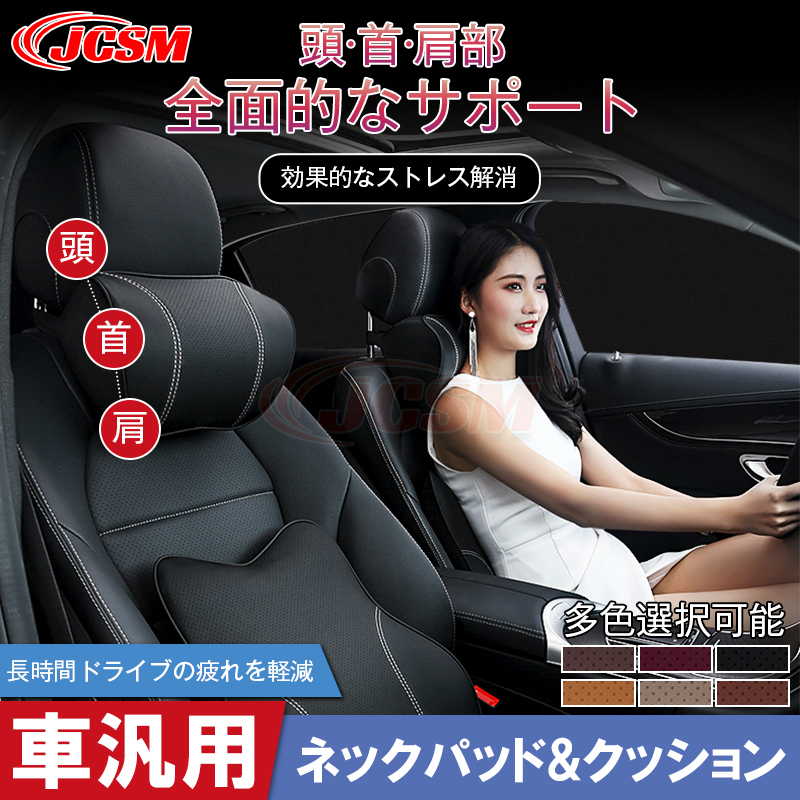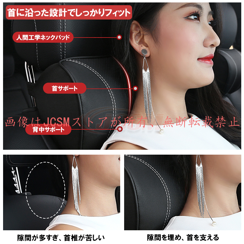 JCSM 車載クッション 首枕 ネックピロー 頚椎サポート車用クッション 腰あてクッション ネックパッド 肩こり 首 運転席 後部座席 低反発 汎用