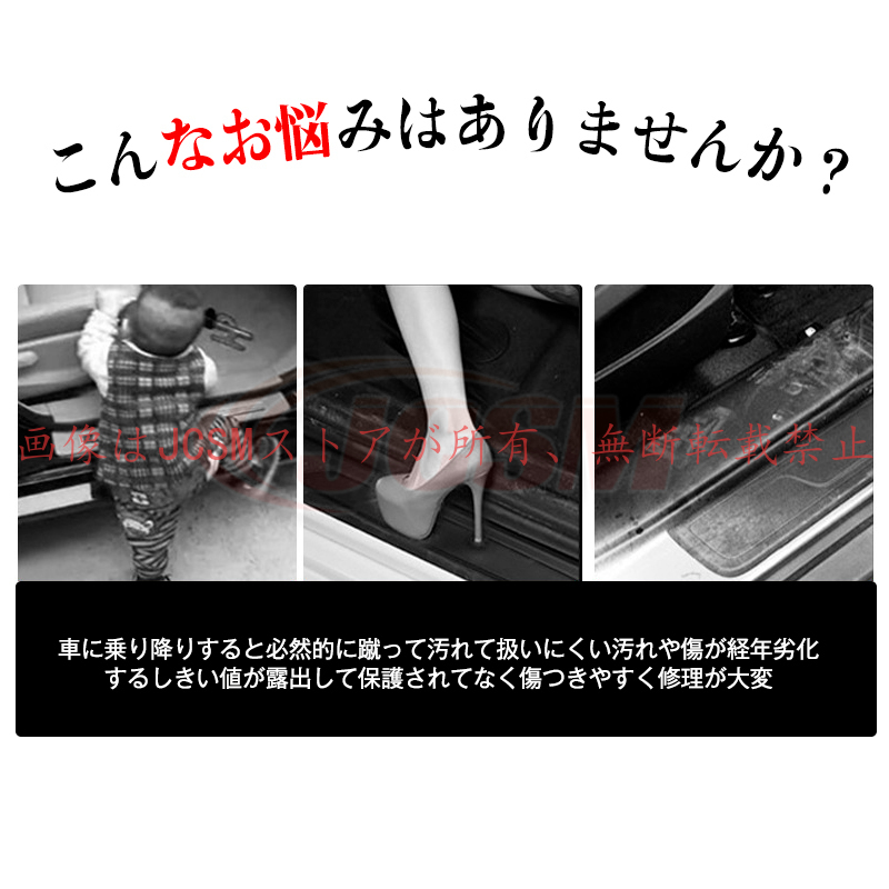 スカッフプレート サイドステップ サイドステップガード 車用品 カー用品 ドア 傷防止 汎用 プロテクター カーフィルム キズ 汚れ 防止 保護 カバー ガード ドレスアップ 滑り止め 汎用 ドアガード 4枚セット 貼るだけ簡単 全車種対応 車 衝撃保護