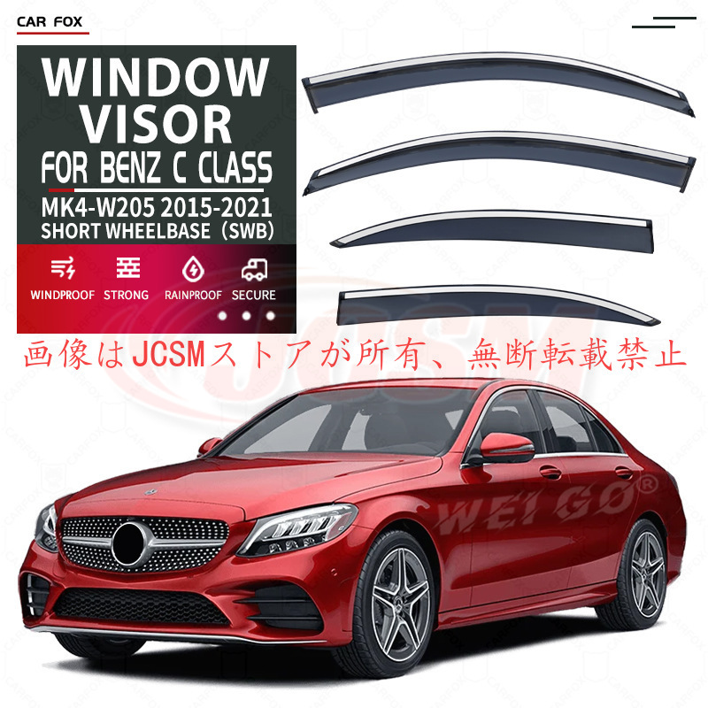Cクラス(メルセデス・ベンツ)W205 (SWB)ショートホイールベース 専用 ドアバイザー 4PCS サイドバイザー 換気 専用設計 高品質 雨避け 日避け JCSM