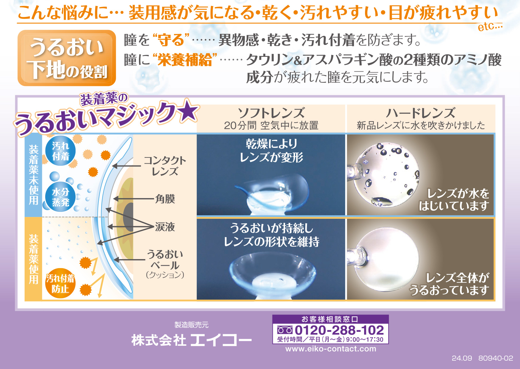 コンタクト乾燥対策・つけ心地改善・汚れ防止・長時間装用・ドライアイ対策・カラコン相性◎といったニーズに最適です。