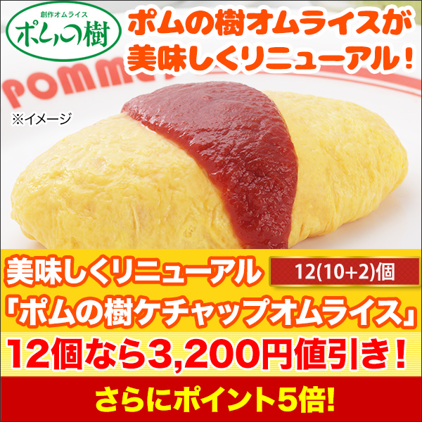 商品説明 | ポムの樹オムライスが美味しくリニューアル!卵はさらにふわふわに、お米もふっくら感アップ! 野菜の甘味たっぷりケチャップ、卵は一つずつふんわり手巻きなど、ポムの樹のこだわりをそのままお届けします! トレー付きだからそのままレンジで簡単調理! |