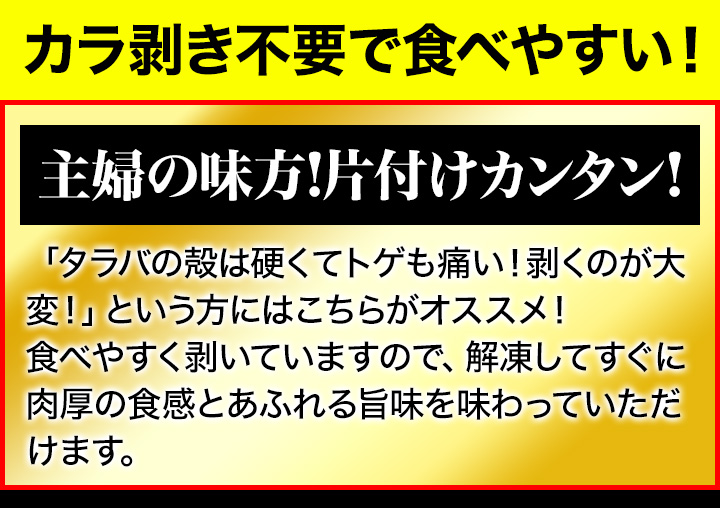 召し上がり方は自由自在。鮮度と品質に自信がある生タラバです。