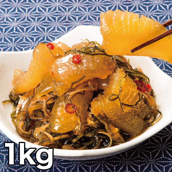 数の子、いか加工品(いか、砂糖、食塩)、醤油、昆布、たん白加水分解物、かつお節調味液、食塩、砂糖、唐辛子/ソルビット、調味料(アミノ酸等)、増粘多糖類、(一部に小麦、大豆、いかを含む)