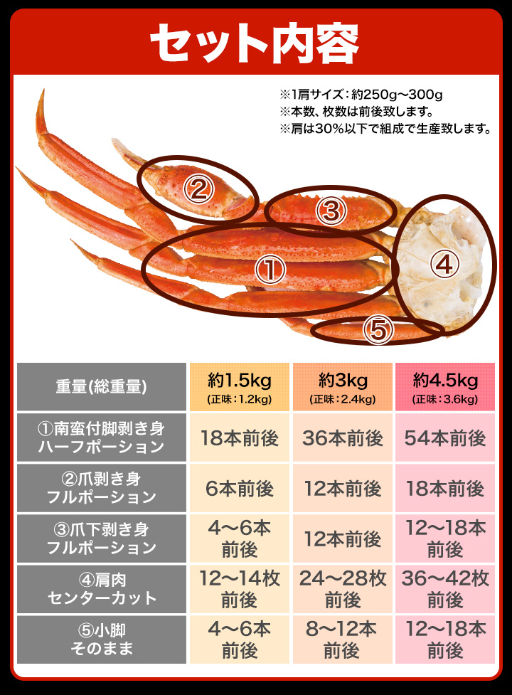 ( )内の正味とは、グレーズを除いたカニのみの重量です。