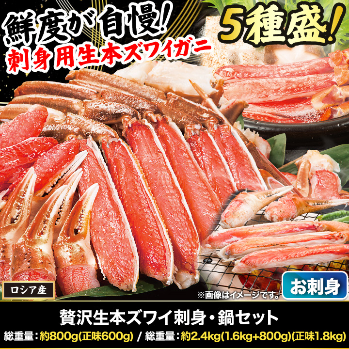 2.4kg かに カニ 蟹 生ズワイガニ ズワイガニポーション ズワイガニお刺身 生ズワイポーション 贅沢生本ズワイ刺身・鍋セット 快適生活 カニ鍋 カニしゃぶ