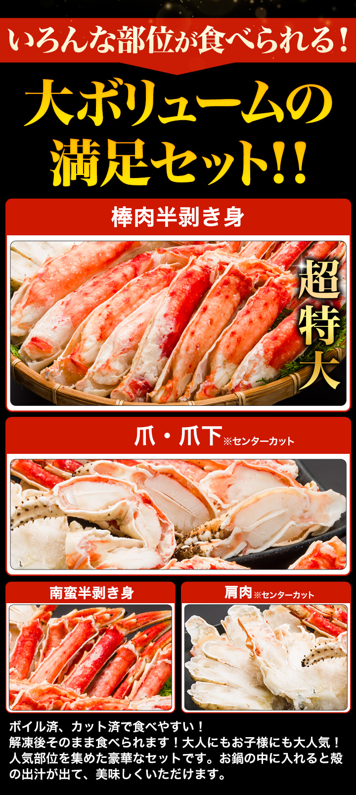 3.5kg かに カニ 蟹 タラバカット済 タラバガニ たらばがに ボイルタラバ タラバガニ剥き身 超特大カットボイルタラバガニまるごとセット 快適生活