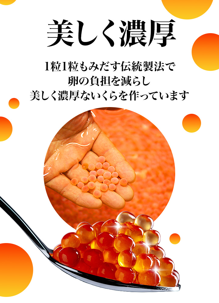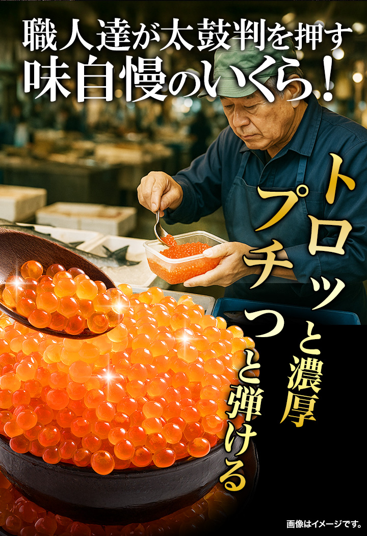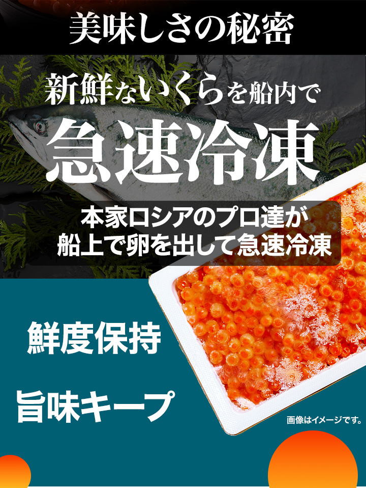 | 商品説明 | 水産会社の大手メーカーの目利きが厳選!船上で卵を出して急速冷凍するので新鮮で旨味が逃げずに美味しいいくら! |