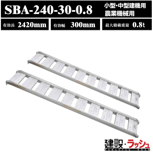 【昭和ブリッジ】アルミブリッジ 全長2420mm×有効幅300mm 最大積載0.8t 2本セット[SBA-240-30-0.8] ツメ 小型 中型建機用 農業機械用 ゴムシュー ホイール用