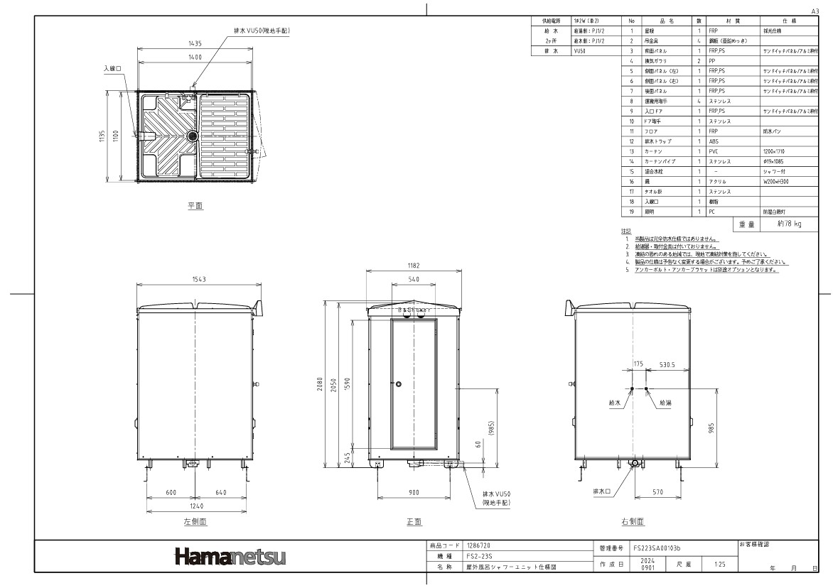 屋外風呂シャワーユニット FS2-23S 浴槽なし