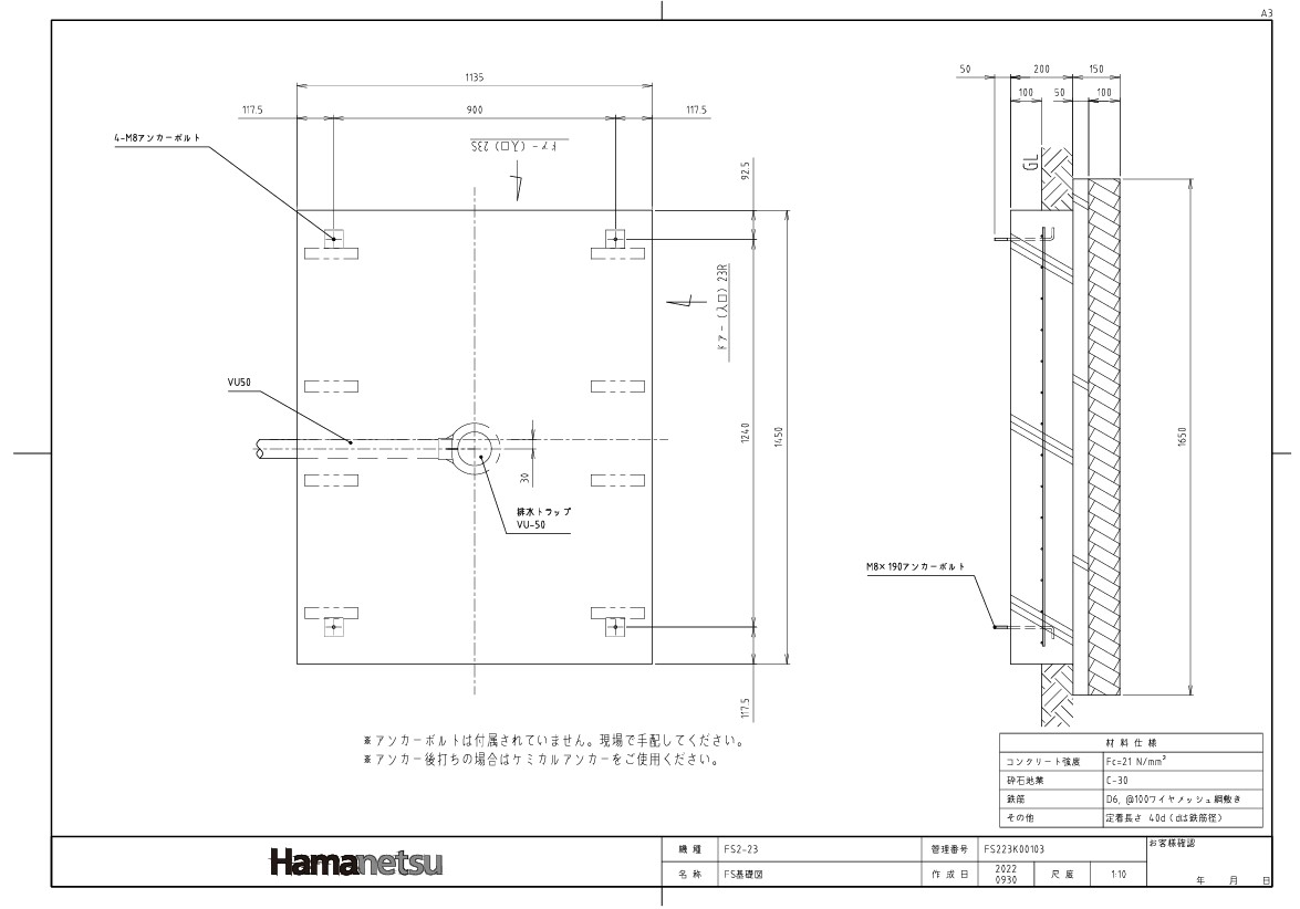 ●FS2-23SB ←クリック ハマネツ 縦扉 給湯器なし
