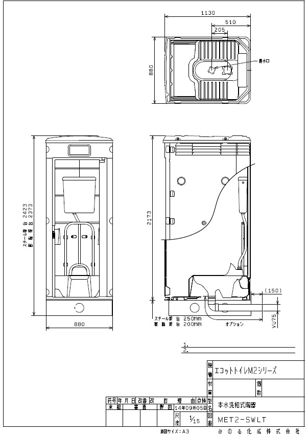 【みのる産業】[MET2-SWLT] 仮設トイレ エコットトイレM2 和式 水洗タイプ 架台付き 仮設便所 工事現場 屋外イベント フェス