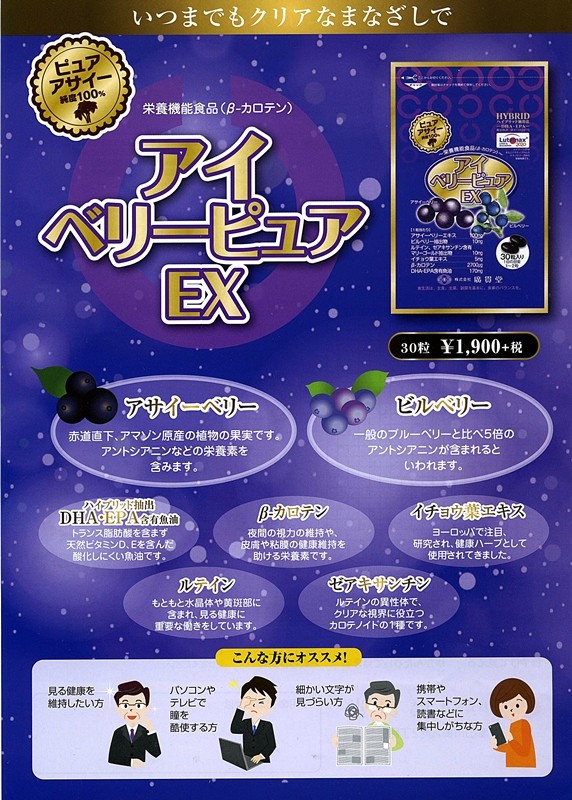 商品名 アイベリーピュアEX名称 アサイーベリーエキス含有食品原材料名 |
