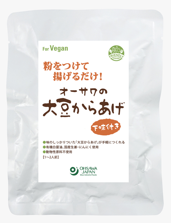 【原料名】オーサワの玄米粉入り大豆からあげ、有機白醤油、醗酵調味料、おろし生姜[生姜(国産)]、食塩(海の精)、酵母エキス、おろしにんにく[にんにく(国産)]