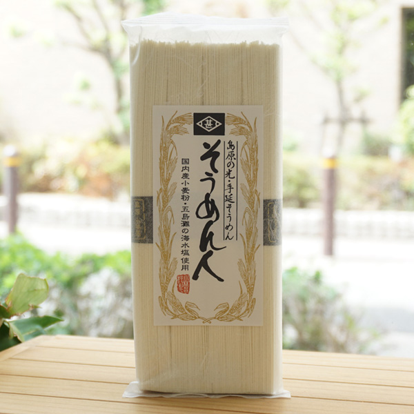 国内産小麦粉を独自にブレンドし、クリーンな海で知られる長崎県の西海国立公園内の崎戸町で製塩された天然塩を使用して、雲仙山麓の豊かな自然の中で、完全熟成させながら、2日間かけてじっくりと延ばしつくりあげました麺です。