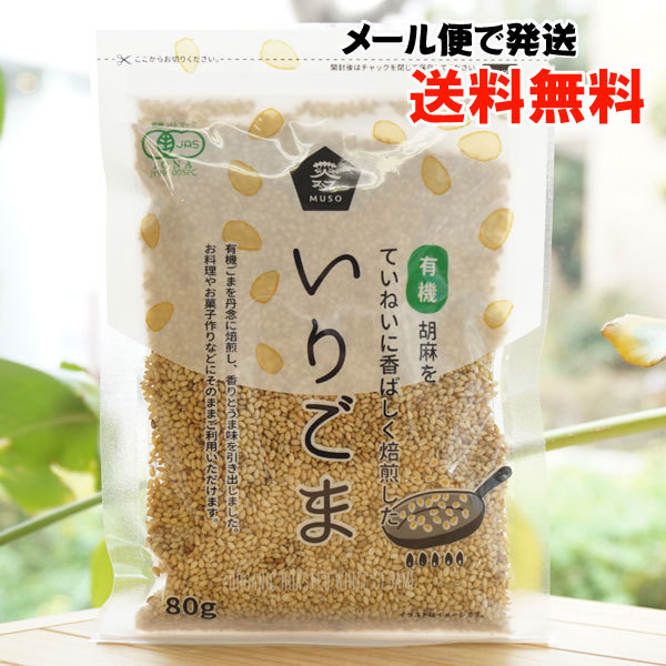 有機胡麻をていねいに香ばしく焙煎した いりごま (白) 80g ムソー メール便の場合、送料無料