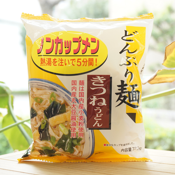 どんぶりに入れて熱湯を注ぐだけで手軽に食べられる「ノンカップメン」。刻み油揚げが入ったきつねうどんです。