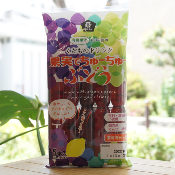 くだものドリンク 果実でちゅーちゅー (ぶどう) 45ml×5本 ムソー 有機果汁100%使用 香料・着色料不使用 国内産てんさい糖使用