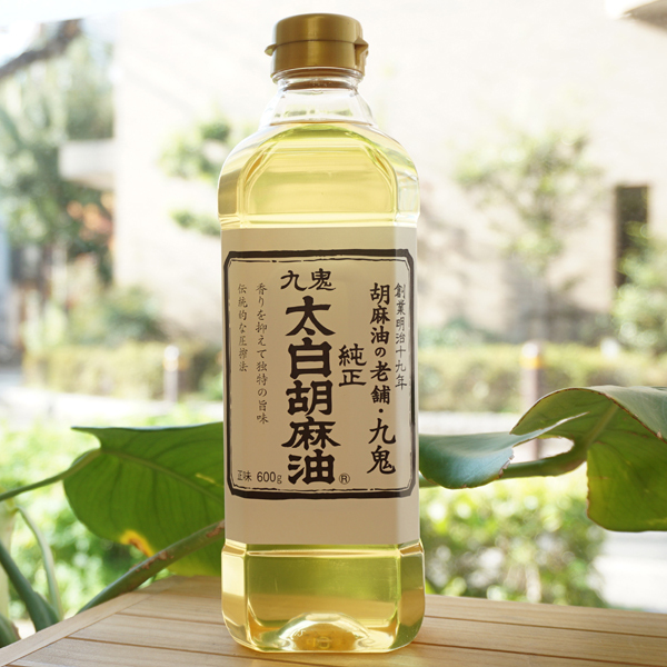 純正胡麻油 九鬼産業創業以来、ごま油の風味を活かす圧搾法で丹精込めて搾られています。