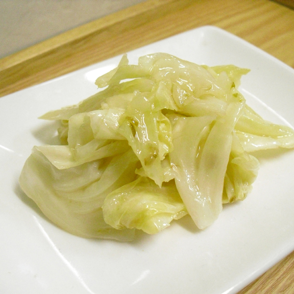 ささっと一品!無限に食べられそう!!1、ザク切りキャベツ(1/8個分)に ごま油大1、チキンコンソメ小1、塩少々、ニンニクチューブ大1/2を 乗せて、軽くラップして、600wで約2分レンチン。