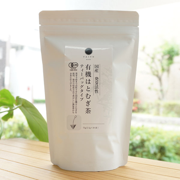 国産 発芽活性 有機はとむぎ茶(ティーバッグタイプ)/75g(2.5g×30袋)【太陽食品】