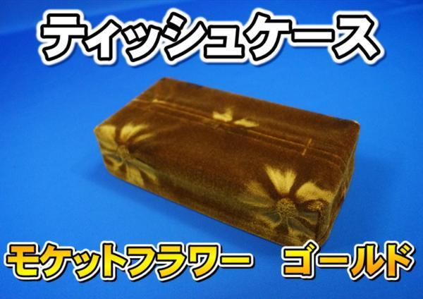 モケットフラワー ティッシュケース ゴールド