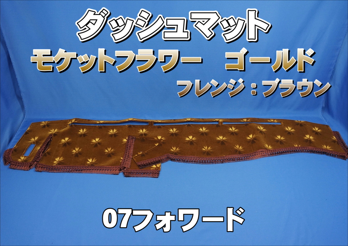 商品名 モケットフラワー【コスモス】 ダッシュマット製造メーカー テクノガレージ製商品サイズ 07フォワード標準/ワイド【H19.7〜R5.7】※R3.2〜のセンサー付き車は、ご注文後お知らせ下さい。商品紹介 ■ダッシュマット(ビニール無し)※5500円アップでビニールキルト付き、又は、綿入りキルト付きに変更可能です。※5000円アップでリング付き(ゴールド/シルバーリング)に変更可能です。ご希望の方はお知らせください。■柄:モケットフラワー■色:ゴールド■フレンジ:ブラウン■標準/ワイド※標準かワイドかをお知らせください。※他の生地、色もございますので、お問い合わせください!※同色の生地フロアマット等も製作可能です。お問い合わせ下さい!商品状態 新品注意事項 ※受注製作商品の納期について受注制作の為、代引き発送不可になります。入金後のキャンセルはできません。通常、製作期間は約4週間前後ですが、メーカーが生地の在庫を欠品している場合、長期間お待たせすることがあります。