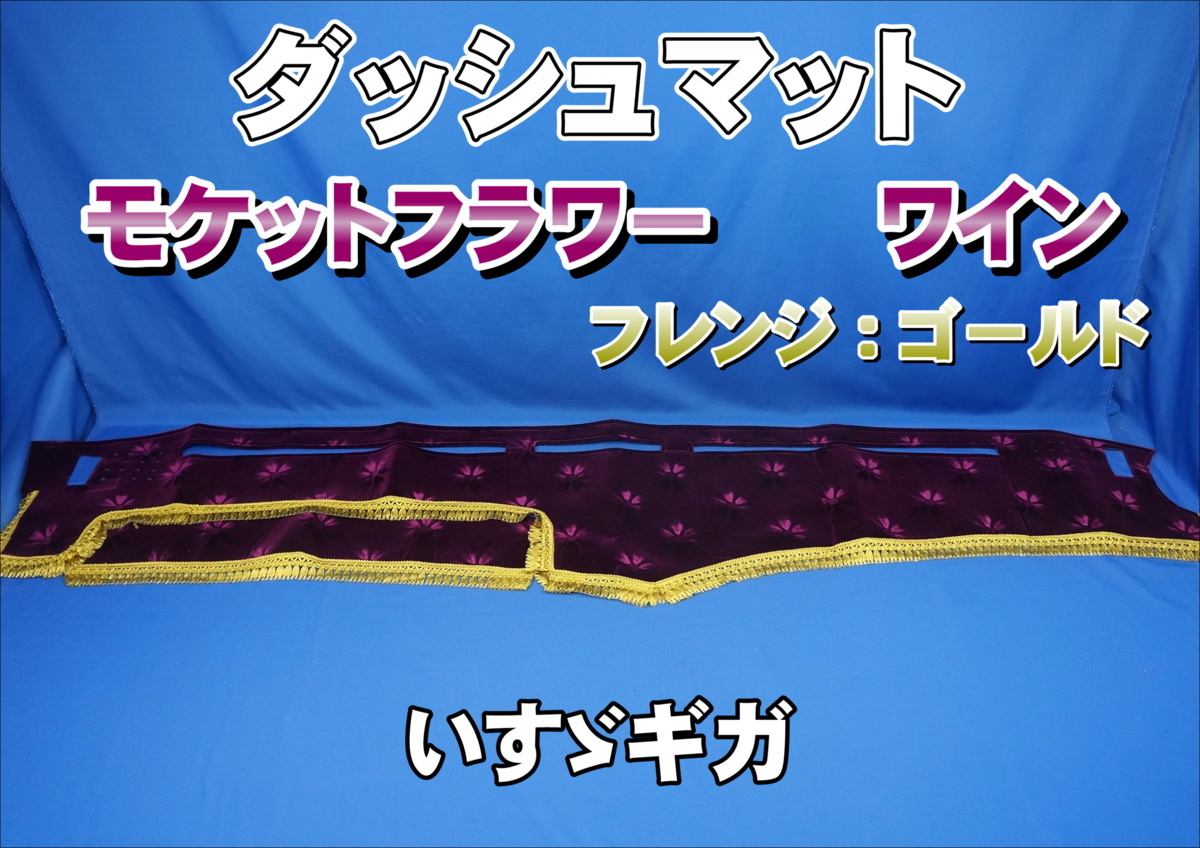 商品名 モケットフラワー【コスモス】 ダッシュマット製造メーカー テクノガレージ製商品サイズ いすゞギガ【H6.12〜H27.10】商品紹介 ■ダッシュマット(ビニール無し)※5500円アップでビニールキルト付き、又は、綿入りキルト付きに変更可能です。※5000円アップでリング付き(ゴールド/シルバーリング)に変更可能です。ご希望の方は、お知らせください。■柄:モケットフラワー■色:ワイン■フレンジ色:ゴールド※他の生地、色もございますので、お問い合わせください!※同色の生地フロアマット等も製作可能です。お問い合わせ下さい!商品状態 新品注意事項 ※受注製作商品の納期について受注制作の為、代引き発送不可になります。入金後のキャンセルはできません。通常、製作期間は約4週間前後ですが、メーカーが生地の在庫を欠品している場合、長期間お待たせすることがあります。