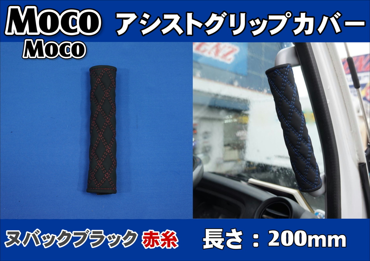 モコモコ アシストグリップカバー ダブルステッチ ヌバックブラック/赤糸