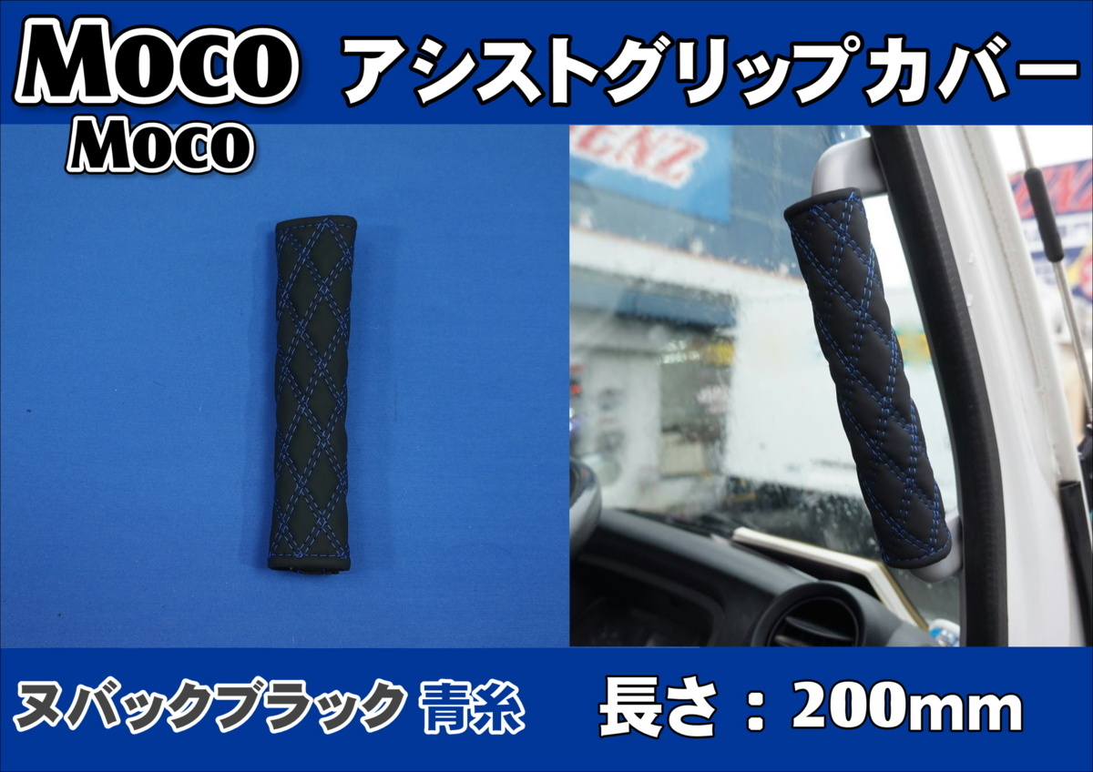 モコモコ アシストグリップカバー ダブルステッチ ヌバックブラック/青糸