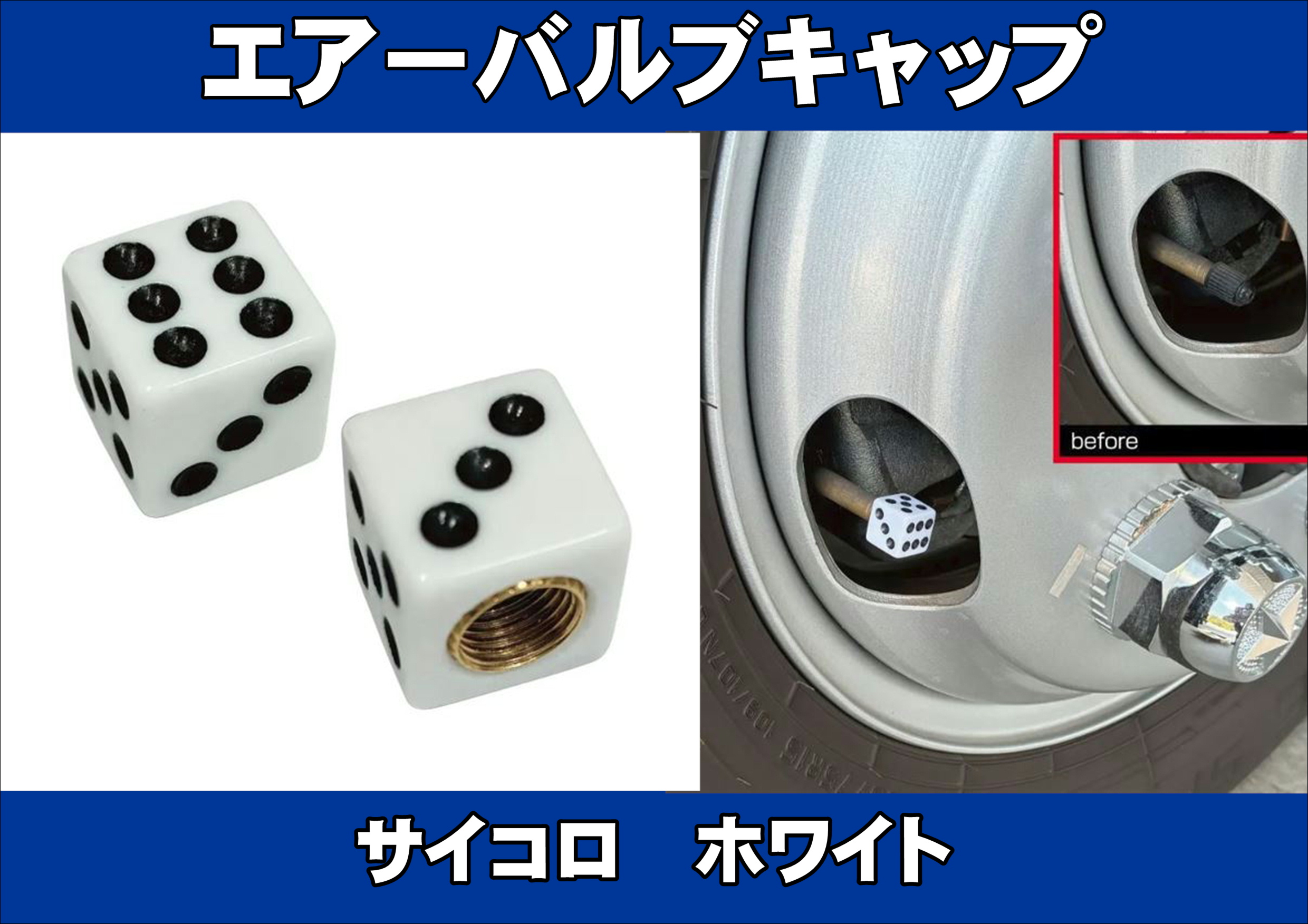 エアーバルブキャップ サイコロ ホワイト 2個入り