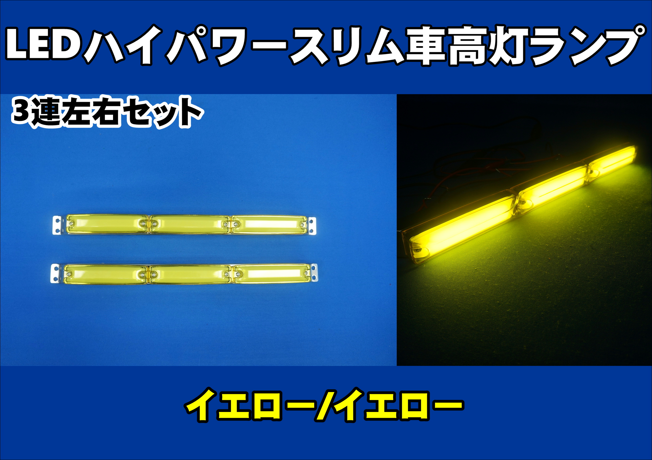 LEDハイパワースリム車高灯ランプ 3連車高灯左右セット 12V/24V共用 イエロー