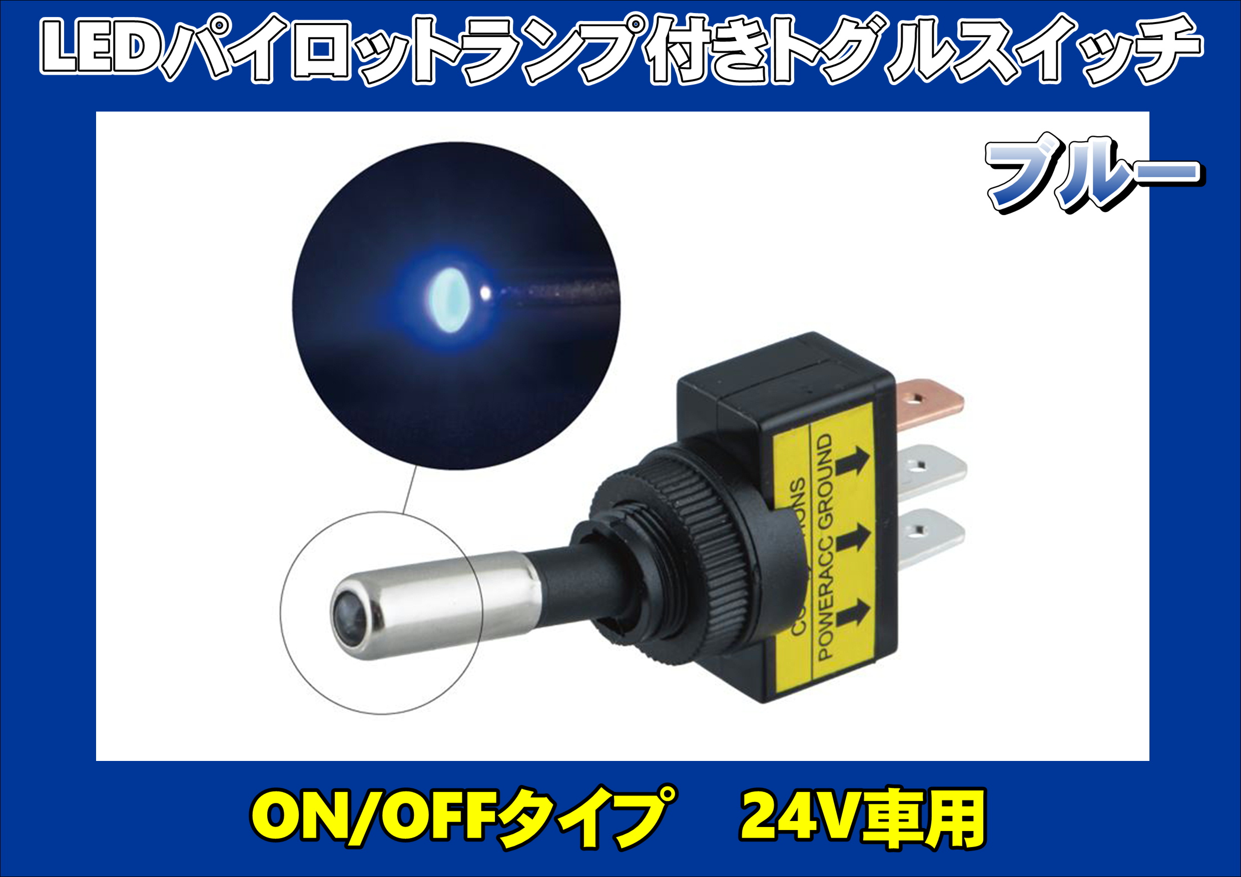 LEDパイロットランプ付きトグルスイッチ ON/OFFタイプ ブルー 24V車用