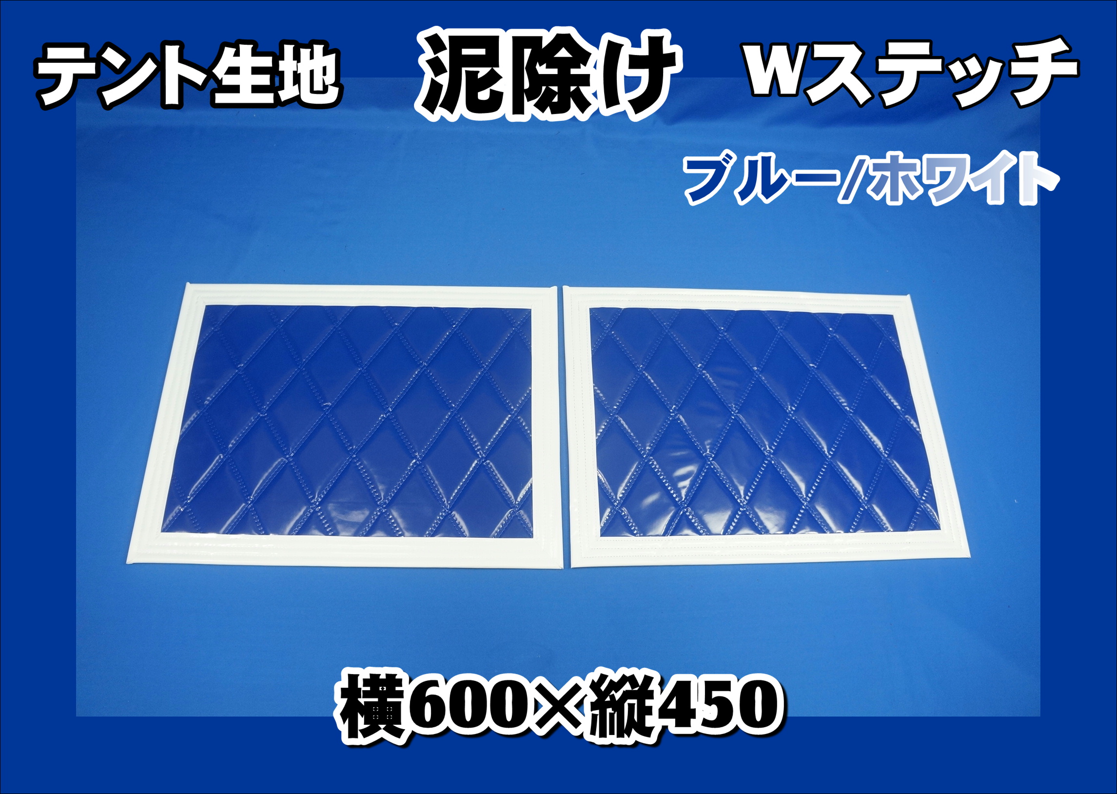 泥除け テント生地 Wステッチ 600mmx450mm ブルー/ホワイト 2枚セット
