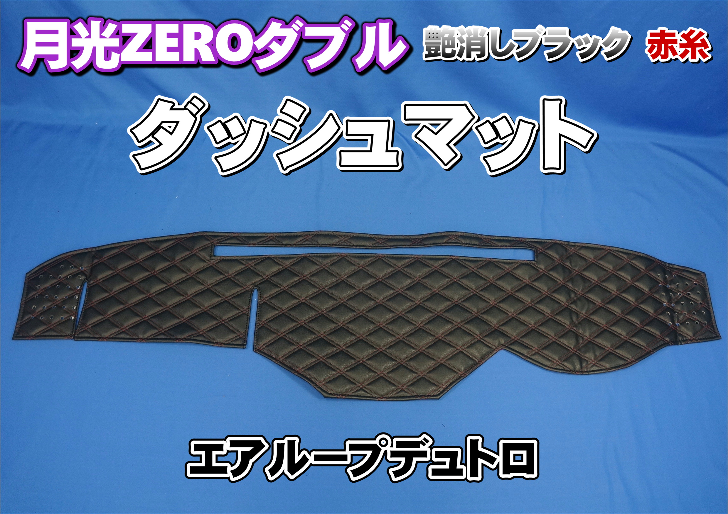 日野エアループデュトロ用月光ZEROダブル ダッシュマット 艶消しブラック赤糸