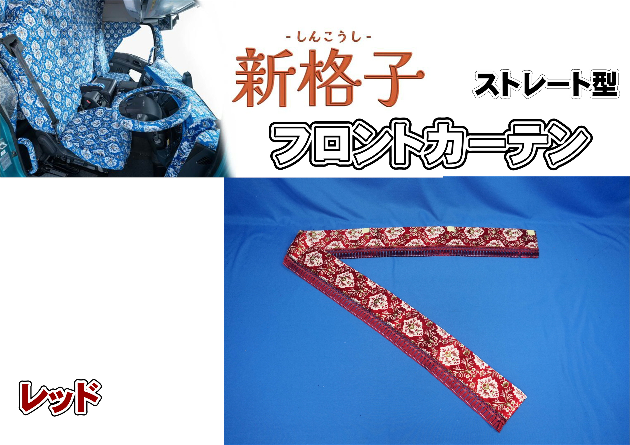 商品名 雅製 フロントカーテン【ストレート型】両面仕様 新格子 製造メーカー 株式会社雅商品紹介 フロントウインド上部に貼り付けるタイプのカーテンです。■柄:新格子【横柄】■色:レッド■フレンジ:レッド■サイズ:L2200mm■高さ:約150mm商品状態 新品注意事項 ※サイズの変更可能です。ご要望欄にて下記より希望のサイズお知らせください。 変更可能サイズ(S1800mm/M2000mm)※記入がなければ2200mmをお送り致します。※商品はお取り寄せとなりますので、納期が3〜4週間ほどかかります。※雅製とテクノガレージ製の生地は異なります。