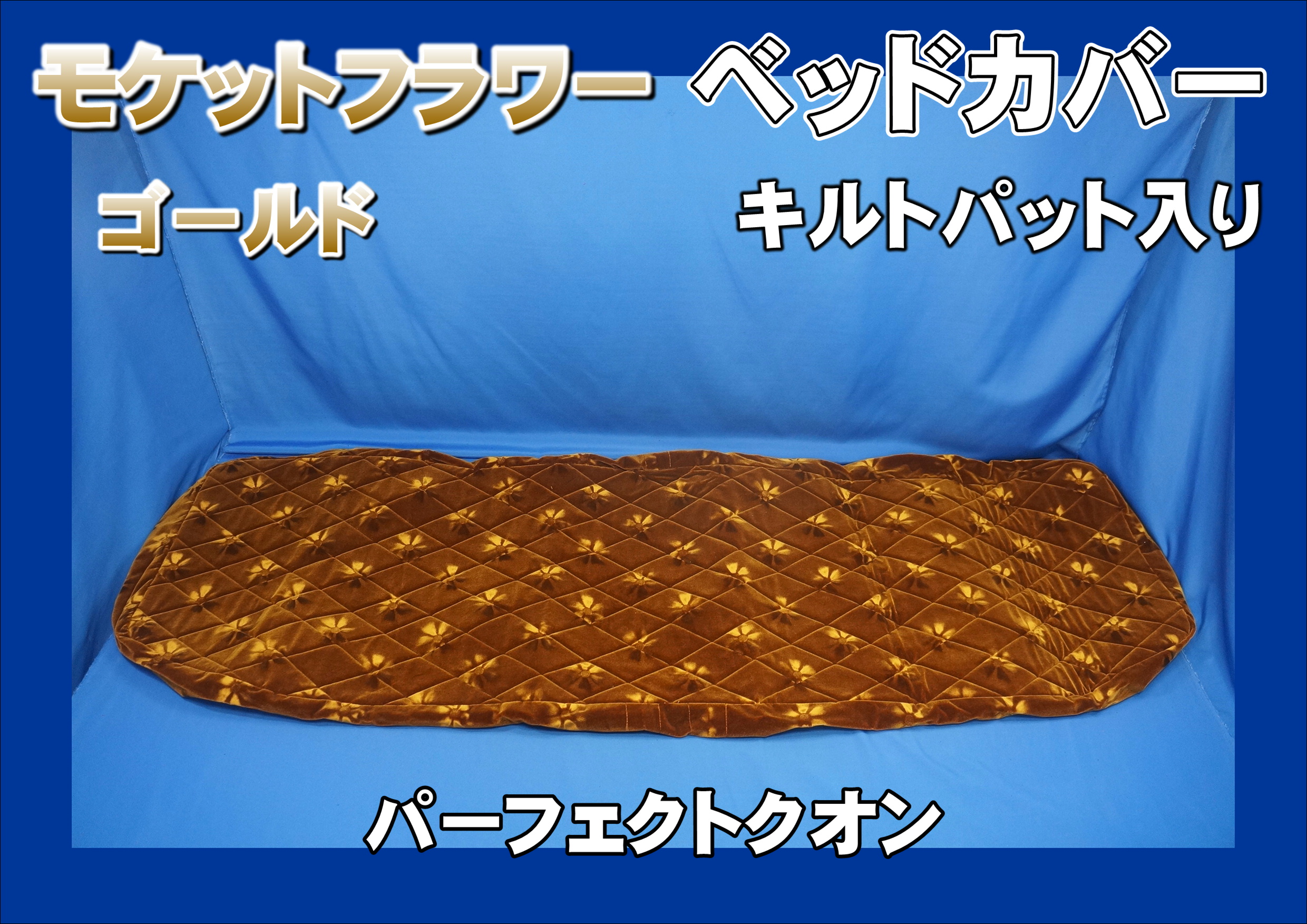 パーフェクトクオン用 モケットフラワー ベッドカバー キルトパット入り ゴールド