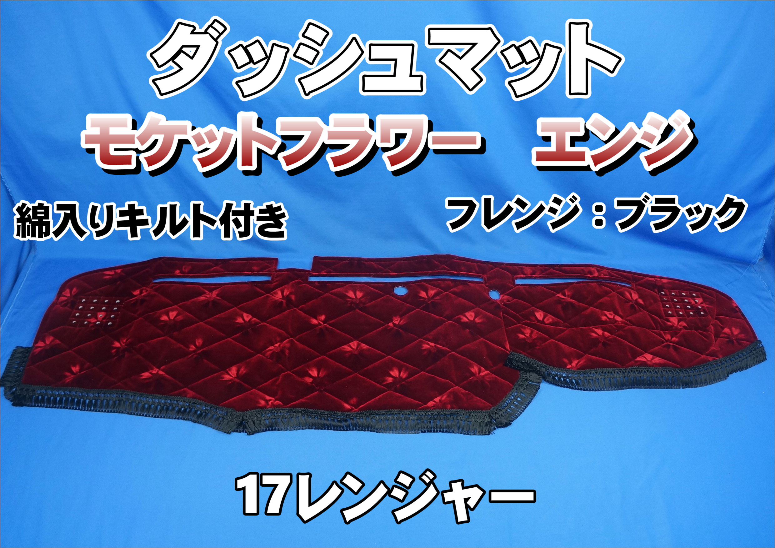 17レンジャー用 モケットフラワー コスモス ダッシュマット 綿入りキルト付き エンジ/ブラック