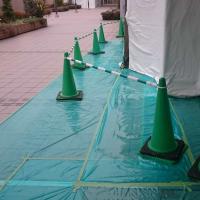 ・すべり防止加工をしたノンスリップシートなので通常のポリエチレン養生シートに比べ歩いても滑りにくく、敗れにくい強度のあるノンスリップ加工シートです