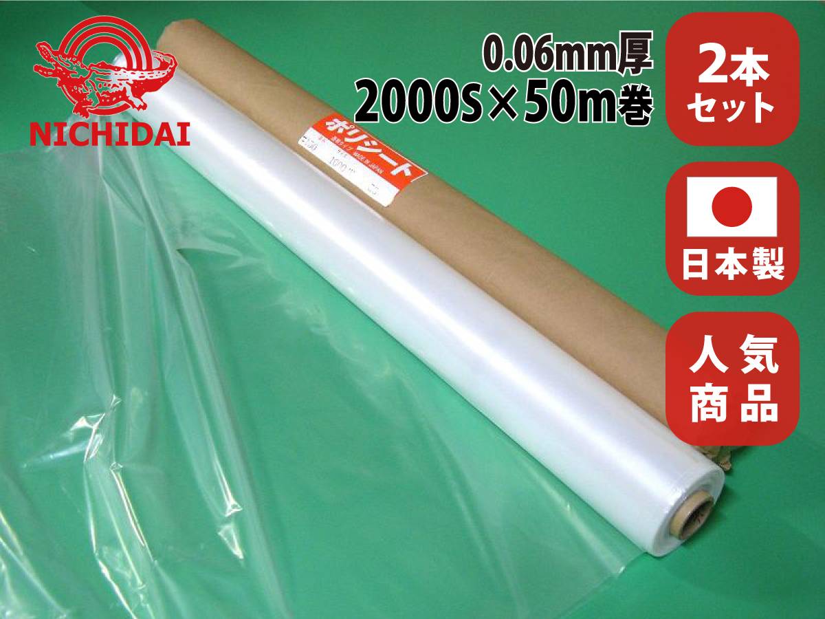 国産 土間ポリシート 約0.06mm厚 #150 2000Sx50m巻 2本入 透明 防湿 建築 養生 ワニ印 日大工業