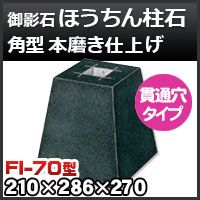 束石・塚石 ほうちん柱石 御影石角型(貫通穴タイプ)本磨き仕上げFI-70 天端7寸 ホゾ穴(mm)50×50×40mm 寸法(天×底×高)(mm)210×286×270mm