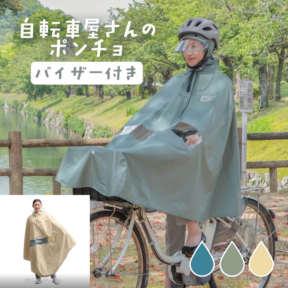 クリームベージュ 自転車屋さんのポンチョバイザー付き D-3POA-VI 男女共用【身長155cm〜180cm】 大久保製作所 MARUTO 前カゴのない自転車には使用できません。