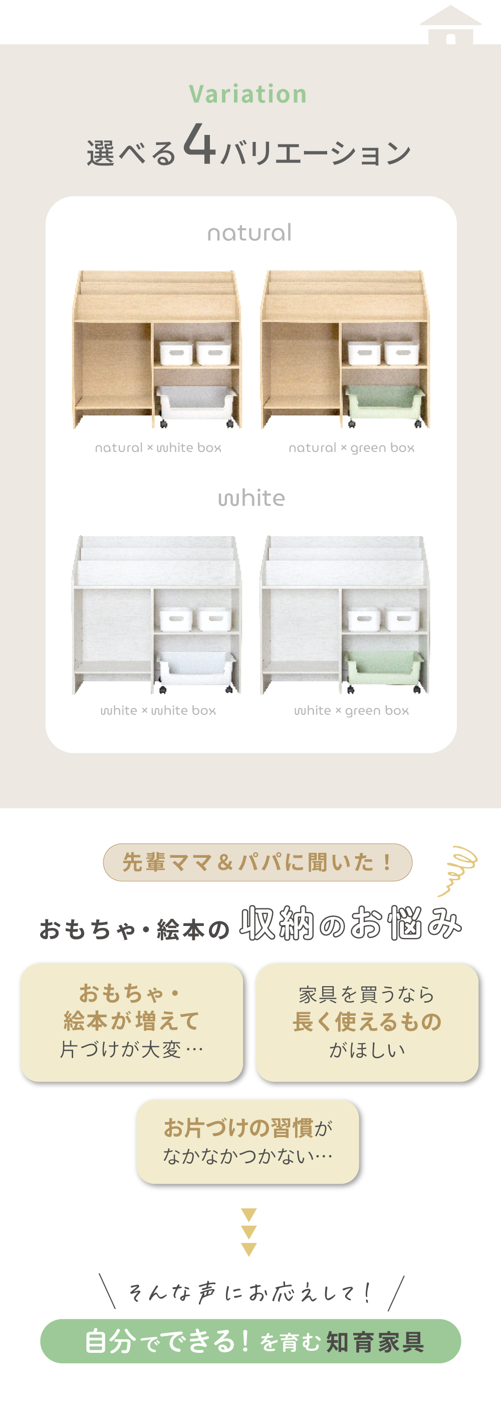子ども目線で考えた「見える収納」と「飾る楽しさ」で、自然とお片づけ習慣をはぐくみます。