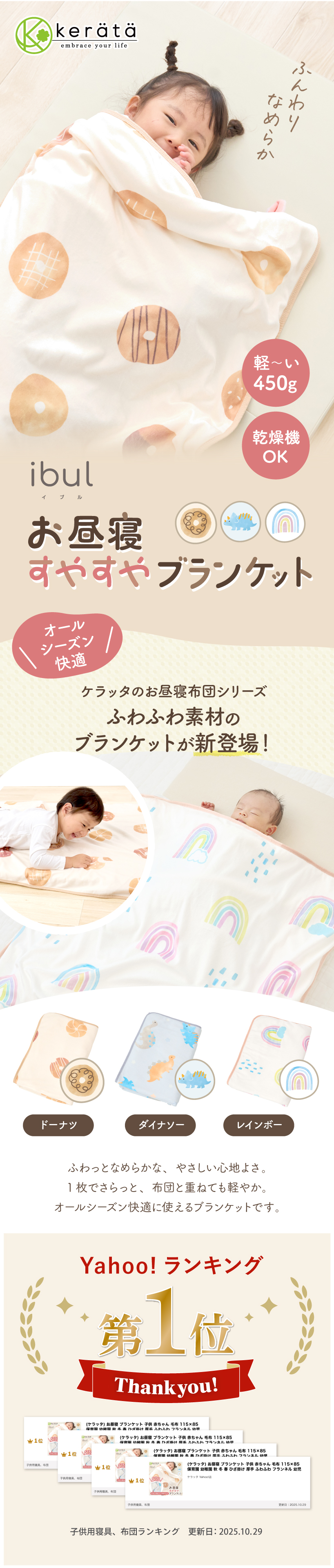 ケラッタのibulお昼寝布団シリーズから秋冬のお昼寝にぴったりな「すやすやブランケット」が新登場!