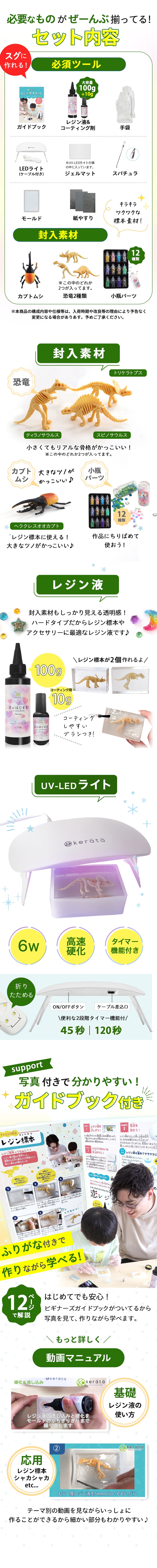 (ケラッタ) レジン セット 自由研究 標本 キット 夏休み 工作 手作り 昆虫 恐竜 骨格 小学生 男の子 女の子 科学 実験 低学年 3年生 2年生 1年生