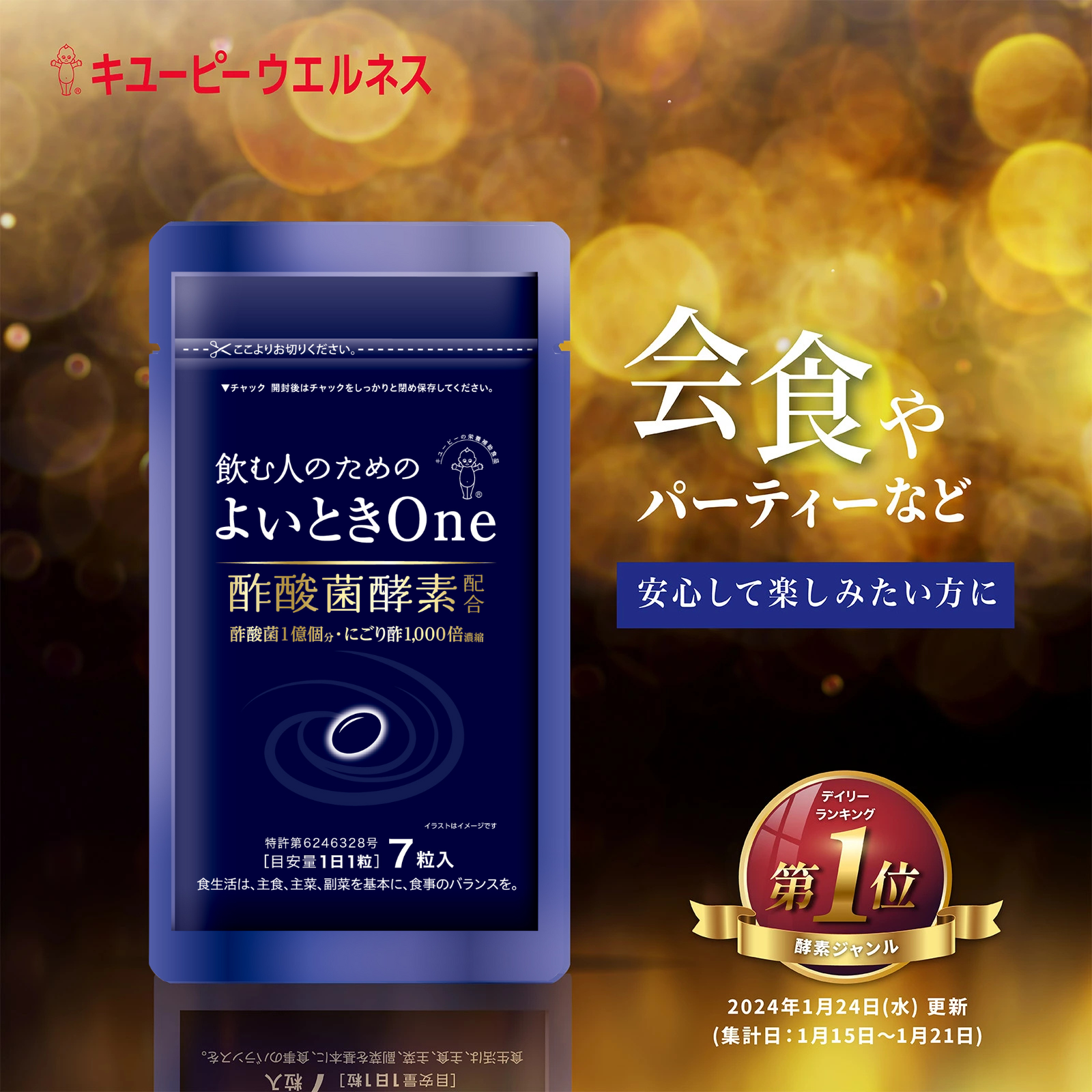 | 原材料 | 植物油脂(国内製造)、アル コール脱水素酵素・アルデヒド脱水素酵素含有酢酸菌抽出物、 ビタ ミンE含有植物油、還元水あめ/ゼラチン、グリセリン、乳化剤、pH 調整剤、ミツロウ、 (一部にごま・大豆・ゼラチンを含む) |
