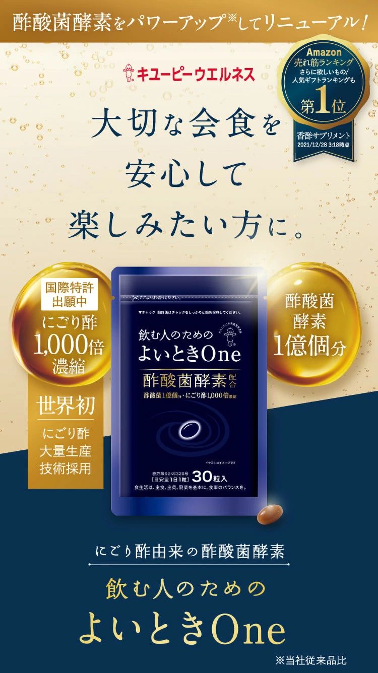 | 成分について | ◆酢酸菌酵素は、古くから伝わる「にごり酢」に存在します。◆キユーピーグループ 独自の醸造技術により、酢酸菌酵素を高濃度に含む「にごり酢」を世界で初めて大量 生産することに成功しました。 |